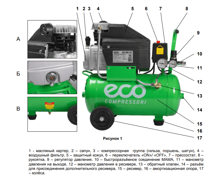 Инструкция по эксплуатации\ работа с инструментом компрессоры ECO