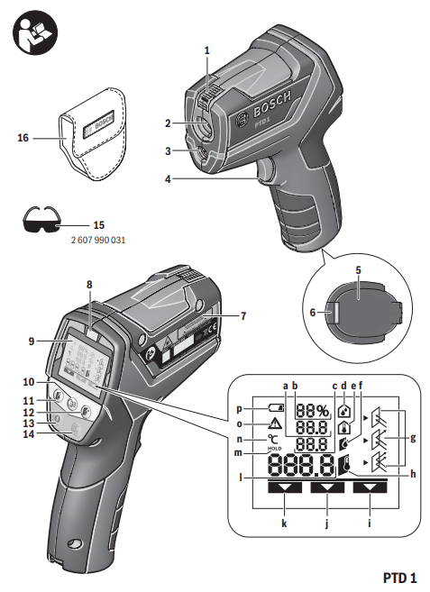 Инструкция по эксплуатации/ работа с инструментом термодетектор Bosch PTD 1